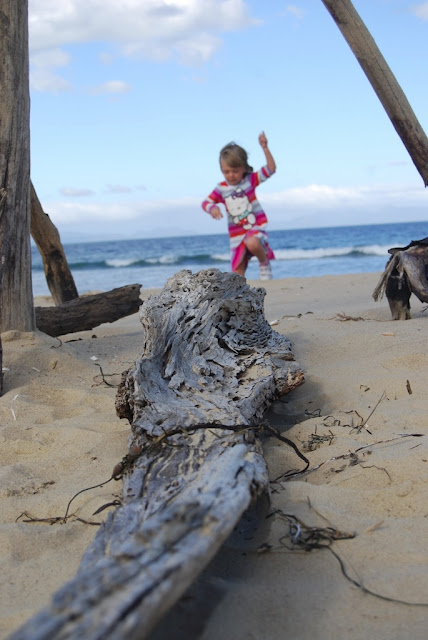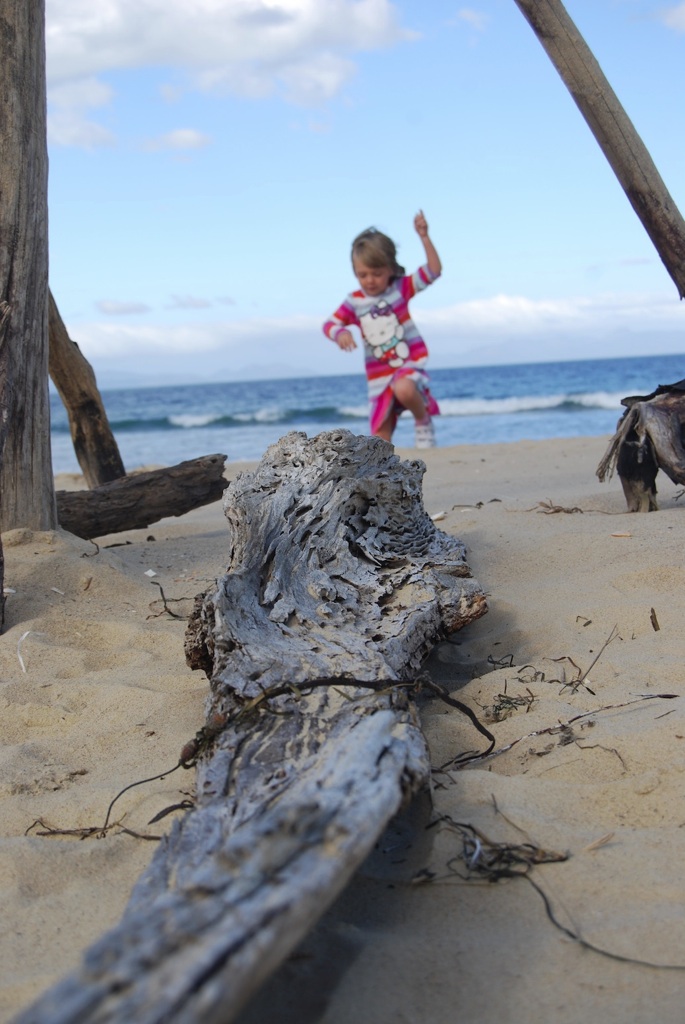 Isabella balancing the gorgeous drift wood log. Such an 'art piece'!